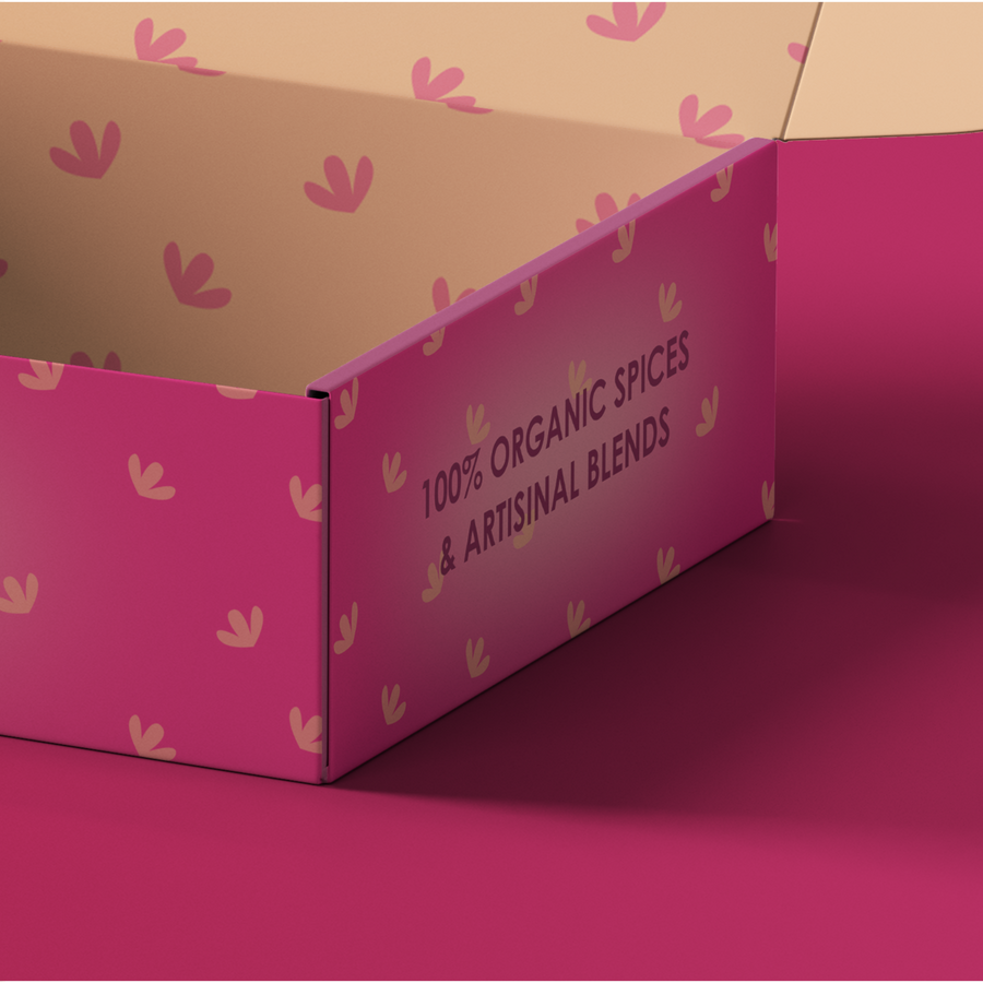 The flower mnemonic in the brand pattern cues in the natural source of the spices.